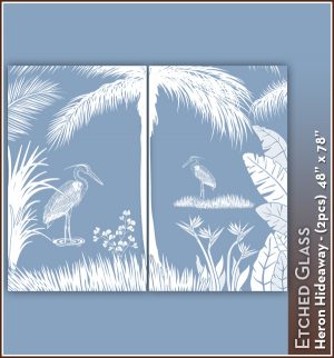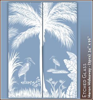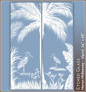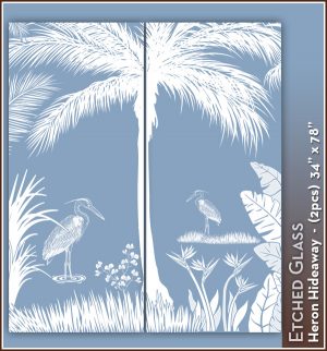 Heron Hideaway Etched Glass See-Through Scene for 2 Doors